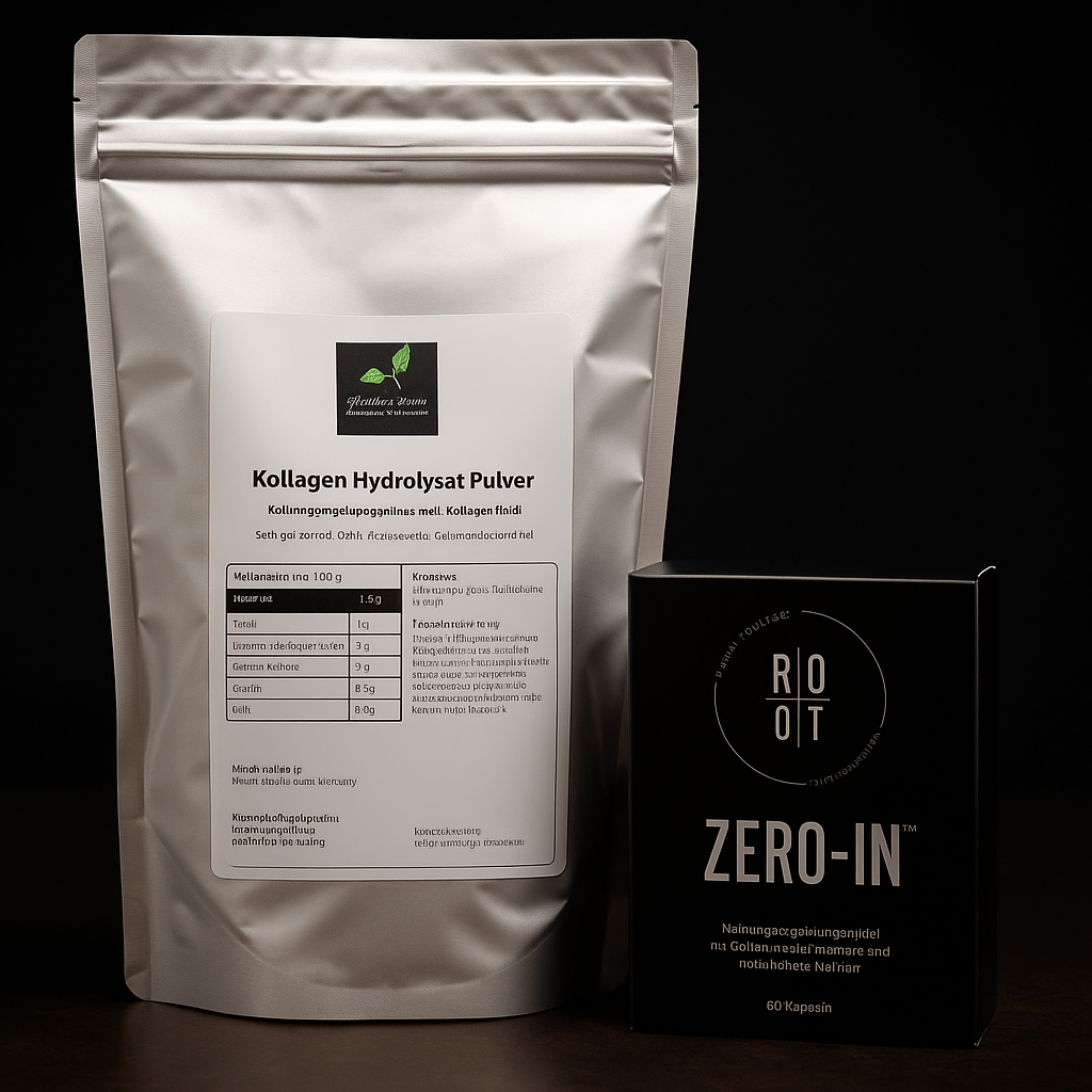 Kollagenpulver: 1 Portion täglich – einfach in Kaffee, Tee oder Wasser auflösen.